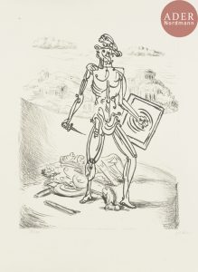 Giorgio de CHIRICO - ladiateur. (Pl. de la suite Métamorphoses). 1929. Lithographie. 310 x 417. Ciranna 12. Très belle et fraîche épreuve sur vélin filigrané « Arches », de la seule pierre-clé tirée en noir, numérotée et signée au...