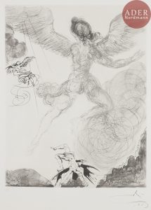 Salvador DALÍ - Icare. (Mythologie, pl. 6). 1963-1965. Héliogravure et pointe sèche. 500 x 398. Michler et Löpsinger 121. Très belle et fraîche épreuve sur vélin filigrané « Arches », numérotée, signée et datée « 1963 » au...