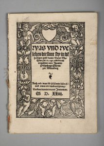 ein unnderrichtung. [Regensburg, Kohl], 1524. In-4, [12] f. (sign. A-C 4), titre dans un large encadrement gravé sur bois, broché sans couv., extrait d'une reliure (légères salissures au titre, avec petit manque en marge en raison d'un onglet arraché, piqûre de ver négligeable en marge, mouillure très claire également marginale).
