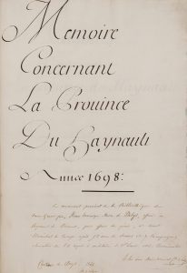 [Hainault] [Manuscrit]. Mémoire concernant la province du Hainault, année 1698. Copie manuscrite soignée de l'époque, encre sur papier, [1] f. (titre), [84] f. chiffrés, [1] (table), écrit r° et v°, env. 17 lignes par page, reliure époque...