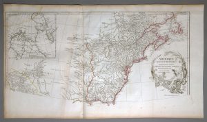 [Americana] [Carte]. ANVILLE (Jean-Baptiste Bourguignon d'). Amérique septentrionale publiée sous les auspices de Monseigneur le Duc d'Orléans... A Paris, chez l'auteur, 1746. Carte gravée sur cuivre, en 2 feuilles, chacune d'env. 46 x 87 cm hors...