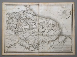 [Americana] [Carte]. BUACHE (N.). Carte générale de la Guiane... [Paris, l'auteur], l'An VI de la République [1798]. Carte gravée, env. 50 x 69 cm. hors marges (pli central peu marqué, mouillure claire angulaire, qq. rouss.). Carte " dressée...