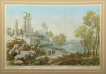 [Italie] [Sicile]. CASSAS (Louis-François, 1756-1827). Ruines du temple de Junon à Agrigente. Ensemble de 2 eaux-fortes aquarellées avec rehauts de gouache. [Vers 1800]. Sous verre et cadres modernes. 1. Vue d'une partie des Ruines du Temple de...