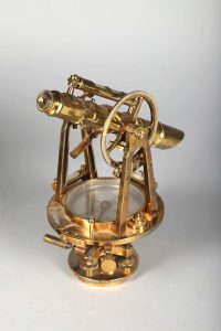 niveaux à bulle, d'un cercle vertical et d'une boussole avec système de blocage. Bel état. ; Avec une lunette d'arpentage [L. : 28 cm] en laiton, cercle horizontal, non signée, XIXe siècle.