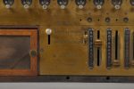 Les numéros de 0 à 9 sont gravés en blanc sur lamelles noires rapportées, les boutons, tirettes et manivelles sont en métal sauf celle de la grande manivelle qui porte une poignée sculptée en os.