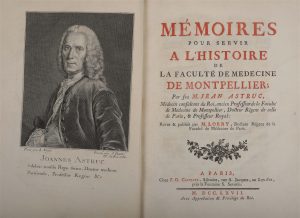 Édition originale de cet ouvrage sur l'une des plus anciennes et des plus renommées facultés de médecine de France. Paru à titre posthume, il est publié par le médecin Anne Charles Lorry (1726-1783) à partir des papiers de l'auteur, et contient l'éloge historique du médecin consultant du roi, et professeur à Mnotpellier Louis Astruc (1684-1766), et une courte bibliographie de ses travaux. Les deux premiers livres sont consacrés à l'histoire de la faculté de Montpellier, les trois suivant sont occupés par des biobibliographies de médecins de la faculté, depuis ses origines jusqu'au milieu du siècle.