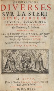 [Médecine]. BOURGEOIS (Louise). Observations diverses sur la stérilité, perte de fruict, foecondité, accouchements, & maladies des femmes, & enfants nouveaux naiz. A Rouen, chez la Vve Th. Daré, 1626. Deux tomes en 1 volume in-8, [6] f., 233...