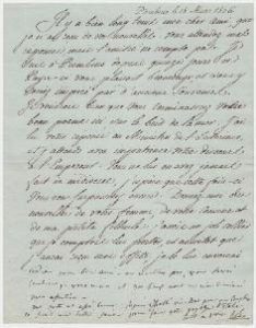 La sœur de Napoléon annonce son arrivée en Italie avant la naissance de sa fille Elisa-Napoléone ; (…) Je suis à Piombino depuis quinze jours ; ce pays-ci vous plairait beaucoup et vous y seriez inspiré par d’anciens souvenirs. Je voudrais bien que vous terminassiez votre beau poëme ici sur le bord de mer (…). J’attends avec impatience votre discours à l’Empereur ; vous ne lui en avez jamais fait de médiocre (…). Donnez moi des nouvelles de votre femme, de votre cousine et de ma petite filleule : j’avais un joli collier que je comptais lui porter (…). Elisa ajoute de sa main : Adieu mon bon ami. Ne m’oubliez pas, vous savez combien je vous aime et 300 lieux n’ont en rien diminué mon affection. Ma santé est assez bonne ; j’espère qu’(Hallé?) viendra pour mes couches. Ce serait une belle raison pour faire votre voyage d’Italie (…).