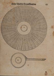 Edition originale de ce recueil de récréations mathématiques et physiques, qui offre un panorama des connaissances de l'époque, amplement illustré de très nombreuses figures gravées sur bois dans le texte. L'ouvrage porte la mention de deuxième partie, " Zweyter Theil ", parce qu'il fait suite à celui de Daniel Schwenter, " Deliciae physico-mathematicae oder mathematische und philosophische Erquickstunden ", paru en 1636. Georg P. Harsdörffer (1607-1658) en publiera ultérieurement (en 1653) une troisième partie, et chacune est autonome. Celle-ci se termine par une table détaillée et un index.