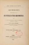 [Marine]. LIEUSSOU (Aristide). Recherches sur les variations de la marche des pendules et des chronomètres, suivies d'un projet d'organisation du service des chronomètres appartenant à la marine. Paris, imprimerie administrative de Paul Dupont,...