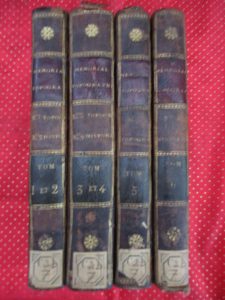 Petites galeries de vers aux reliures, sans atteinte aux feuillets, quelques rousseurs aux planches, une fine mouillure intérieure aux derniers feuillets du tome III.