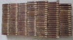 rédigé à Genève, par une société de gens de lettres. Genève, de l'Imprimerie de la Bibliothèque universelle, 1796-1815. 144 volumes, dont 4 vol. de tables, in-8, planches en taille-douce et tableaux dépliants, cartonnages de l'époque (ensemble en état moyen : cartonnages usagés, étiquettes en pied des dos, rousseurs, quelques annotations modernes sur les contreplats).