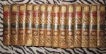 pièces de titre rouges, tomaisons vertes, tranches rouges (reliures usées).