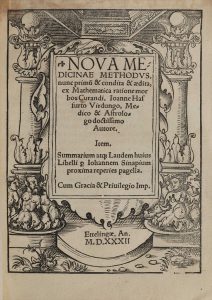 [Livre du XVIe siècle] [Médecine]. VIRDUNG (Johann). Nova medicinae methodus, nunc primu[m] & condita & aedita, Ex Mathematica ratione morbos Curandi. Ettelingae, 1532 [au colophon] : Impressum per Valentinum Kobian. In-4, [80 sur 98] p., [3] f.,...