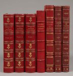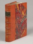 - BRUNET (Charles). Le Père Duchesne d'Hébert, ou Notice historique et bibliographiques sur ce journal… Paris, Librairie de France, 1859. In-16, maroquin poli cerise, dos à 5 nerfs, titre doré, double filet doré aux coupes, dentelle intérieure, tranches dorées sur marbrure [Hardy]. Mouillure en marge du frontispice mais bel exemplaire bien relié.