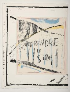 " Les souvenirs de mon enfance, la transmission du savoir, le passage sur terre des hommes et du temps sont les thèmes qui m'habitent principalement ; ils sont mes sources d'inspiration et de réflexion. Je grave des lignes, des points, je joue avec les couleurs, je laisse des traces à l'exemple des plantes, des animaux, des hommes qui le font depuis que le monde est monde. Je ponctue à ma façon l'espace et le temps. " (Jocelyne Benoit). Des institutions publiques québécoises et canadiennes ont acquis ses œuvres dont Bibliothèque et Archives nationales du Québec et Bibliothèque nationale du Canada.