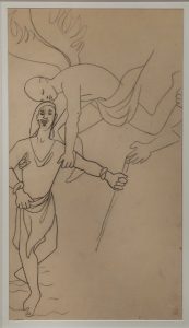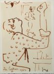 COCTEAU (Jean) (1889-1963). Saint Pierre marchant sur les eaux, (étude pour la décoration de l’abside de la chapelle de Villefranche-sur-Mer, circa 1956) Crayon noir portant le cachet ovale rouge de l’atelier en bas à droite. Papier insolé,...