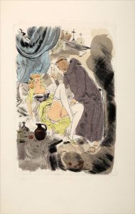 SCHEM. GRECOURT (J.B. DE). Contes galants. Illustrés de gravures originales par Schem. Paris, Vialetay, 1952. In-8, 141 p., [4] f., en feuilles sous couverture rempliée, chemise et étui imprimés de l'éditeur (dos de la chemise passé).