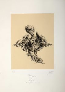 Edition d'un choix de 5 poèmes de Francis Ponge : Le Morceau de Viande, Végétation, Le Mollusque, La Mousse, La Crevette, illustrée de 10 gravures à la pointe sèche sur acier de Mathieux-Marie.