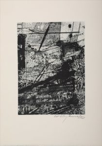 MUCHA. BOULANGER (Daniel). La Huttière. Gravures de Willy Mucha. Paris, La Palatine, 1982. Grand in-8, 22 p., [2] f., en feuilles sous couv. et étui éditeur. Premier volume de la collection " Sept nouvelles exemplaires ", illustré de 3 gravures...