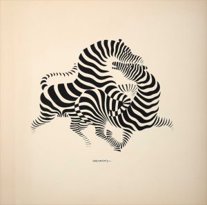 Victor VASARELY (1906-1997). [Couple de zèbres]. 2 sérigraphies signées en bas au milieu. 50 x 50 cm. (Légers frottements, jaunie au verso et sur les bords).