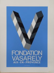 Victor VASARELY (1906-1997). Fondation Vasarely Aix-en-Provence. 4 affiches sérigraphiées sur papier filigranné ARCHES 88, en couleurs, de l'atelier ARCAY. Deux signées dont une dans la planche et l'autre dans la marge. 62 x 42,1 cm. Feuillet :...