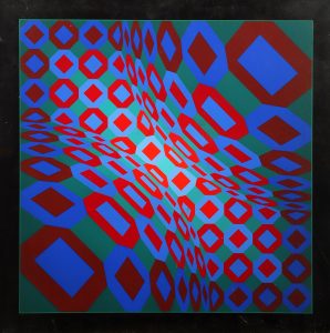 Victor VASARELY (1906-1997). V, Fondation Vasarely, Aix-en-Provence. 4 affiches sérigraphiées dont une avant la lettre. 102 x 68 cm. (Coins cassés, enfoncements, pliures et tâches). On joint : [Formes en bleu, vert rouge]. Sérigraphie en...