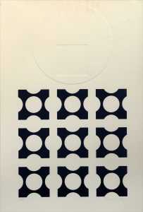 Victor VASARELY (1906-1997). [Cercles carrés]. Estampe gauffrée en relief, signée en bas à droite et annoté "EA" en bas à gauche. 63,5 x 43,5 cm. (à vue) (Tâches et rousseurs). Encadrée sous verre. (Non examinée hors du cadre).