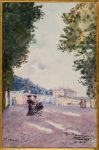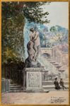 et aquarellée et 32 aquarelles avec envoi signé (140x190 mm) sous passe-partout monté sur onglet. Quelques scènes animées. Mors frottés, dos passé.