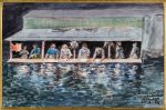 et aquarellée et 47 aquarelles avec envoi signé (140x190 mm) sous passe-partout monté sur onglet. Scènes animées avec personnages. Mors frottés, griffures sur le dos légèrement passé.