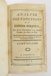 LAROCHE (M. de). Analyse des fonctions du système nerveux.?Genève, Duvillard et Nouffer 1778. 2 vol. in-8.?Veau granité, dos lisses ornés (Rel. d'époque). Mors fendu et faible et manque à la coiffe du tome II.