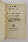 [THIPHAINE DE LA ROCHE]. L'Amour dévoilé, ou le Système des simpathistes, où l'on explique l'origine de l'Amour, des Inclinations, des Simpathies [sic], des Aversions, des Antipathies, etc. S. l., s. n. 1749. in-12, VIII-170 pp. Veau marbré, dos...