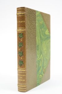 FABRE (Ferdinand).?Feuilles de lierre.?Paris, Charpentier 1853. in-12. 1/2 maroquin olive à coins, roulettes et fil.?dor., guirlande de feuilles de lierre mosaïquée, tête dor., couv.?et dos cons.?(Rel.?postérieure).?Edition Originale.?Envoi a.s....