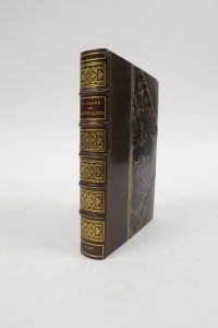 FABRE (Ferdinand).?L'Hospitalière.?Drame rustique en cinq journées.?Paris, Charpentier 1880. in-12. 1/2 maroquin à coins, caissons ornés de fleur.?azurés, tête dor., couv.?cons.?(Granghaud). Edition originale.?Bel exemplaire sur papier Hollande...