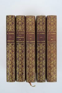 FABRE (Ferdinand).?Mademoiselle de Malavieille.?– Le Roi Ramire. – Sylviane.?Illustrations de Georges ROUX.?– Ma vocation.?Paris, Charpentier 1888, 1889, 1899, 1892, 1908. 5 vol.?in-12.?Reliure uniforme, dos lisse orné de larges...