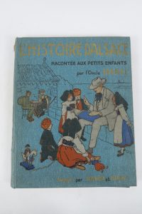 HANSI.?L'Histoire d'Alsace Racontée aux Petits Enfants d'Alsace et de France.?Paris, Floury 1912. in-4. Reliure percaline bleue, composition polychrome (Rel.?éditeur). Cartonnage fatigué.