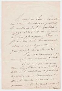Belle lettre politique de Lamartine : (…) Le bien public grâce à vous et à Mr Gisorme va à Marseille. Il a ici une étonnante renommée. Il n’y a de politique que là. Il fait part d’un article de la revue de Blanqui qui rejoint son opinion sur la « taxe des pauvres ». De la politique, il n’y en a point. Tout est mort et enseveli pour longtems. Je ne m’en occupe même pas. Je n’ai personne avec le cœur et les espérances de beaucoup, mais cela se cache. Je vis dans mon cabinet. Les hommes d’affaires s’y succèdent et rien ne se termine. Je suis entre un procès, une résiliation et la misère. Habent sua fata. Je crois bien que ce sera longtemps ainsi. Après plusieurs réflexions sur son sort, il poursuit ; Thiers n’est pas plus populaire ni plus fort que moi à la Chambre. Guisot est aborré, mais on le vend comme au marché (…). La France est un encan (…) Bref, rien nulle part que sordide intrigue (…) Il y à trois siècle qu’il y eut la révolution française, personne ne s’en souvient. Joint une lettre dans laquelle Lamartine l’encourage à publier son étude « au nom du bien public » ; Ce pays ne sait rien, c’est là son plus grand tort. Faites luis de la Lumière. Il ne demande pas mieux que d’avoir de la Raison (…).