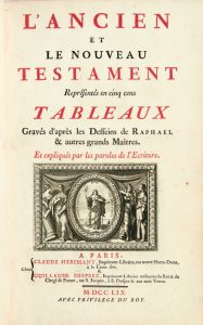 [BIBLE]. - L'Ancien et le Nouveau Testament représentés en cinq cens tableaux gravés d'après les desseins de Raphaël et autres grands maîtres. Et expliqués par les paroles de l'Ecriture. A Paris, chez Hérissant, Desprez, 1759, in-folio,...