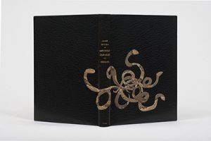 In-12, maroquin noir, décors de serpents entrelacés en peau de reptile mosaïquée parcourant le dos et les plats, dos lisse, filet intérieur, tranches dorées sur témoins, couverture et dos, chemise rhodoïd, étui (Alix et Jean Paoli).