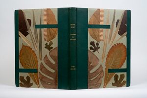 In-folio, demi-maroquin vert à bandes, plats ornés de feuilles contrecollées, dos lisse, tête dorée, non rogné, couverture et dos (René Kieffer).