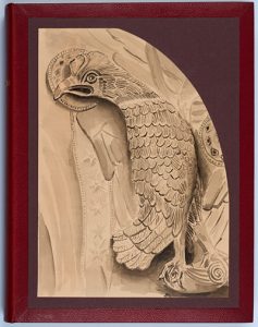─ FOREL (Alexis). Voyage au pays des sculpteurs romans. Paris, Floury, 1934. 2 volumes in-4, maroquin rouge à cadre, plats ornés de lavis d'encre noire reprenant des éléments d'architecture romane, dos lisse, tête mouchetée, non rogné, couverture, étui (J. Reyssat).
