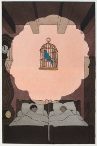 ─ MAETERLINCK (Maurice). L'oiseau bleu. Paris, Piazza, 1945. In-8, demi-basane bleue avec coins, dos orné d'un oiseau mosaïqué, tête dorée, non rogné, couverture et dos (Reliure moderne).