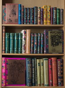 [MONDRAC (A. et R.)]. Collection de 203 volumes illustrés modernes en reliures signées A. et R. Mondrac, maroquin, décors de pièces géométriques ou figuratives de maroquins de couleurs mosaïqués, doublures de maroquin ornées de mêmes...