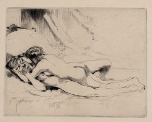 Édition illustrée de bandeaux et culs-de-lampe érotiques ainsi que de 8 eaux-fortes libres d’Auguste Brouet.