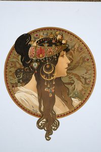MUCHA (Alfons). Tête byzantine - Brunette. [vers 1897]. 345 x 280 mm.
