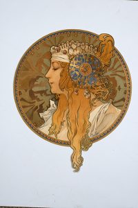 MUCHA (Alfons). Tête byzantine - Blonde. [vers 1897]. 345 x 280 mm.