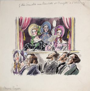 [PAVIS (Georges Alfred)]. Ensemble de 25 aquarelles et 33 croquis à la mine de plomb pour Mimi Pinson d'Alfred de Musset. [vers 1950].