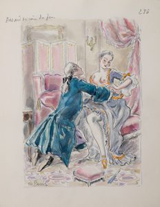 [PAVIS (Georges Alfred)]. Ensemble de 30 aquarelles et 25 croquis à la mine de plomb pour Le Hasard du coin du feu de Crébillon fils. [vers 1950].