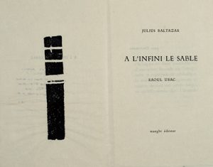 BALTAZAR (Julius). À l’Infini sur le sable. Paris, Maeght, 1985.