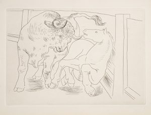 Petit in-folio, en feuilles, couverture illustrée. Édition illustrée par Pablo Picasso de 12 eaux-fortes originales hors texte plus une pour la table des eaux-fortes, de 67 dessins gravés sur bois par Georges Aubert et de 16 pages ornées de dessins composés de points et de traits.